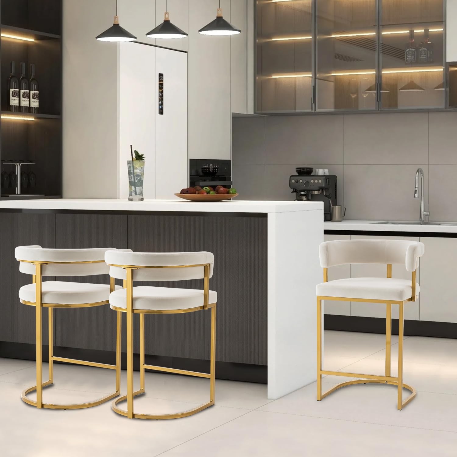 Set of 2 Beige Velvet Bar Stools with Gold FootrestWe use cookies to improve your experience on our site. By using our site, you consent to cookies.