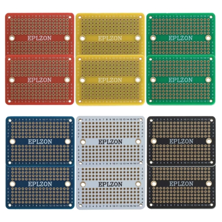 12pcs multi-color mini PCB for small scale prototyping, including yellow, blue, red, black, white, green,Two pieces of each color