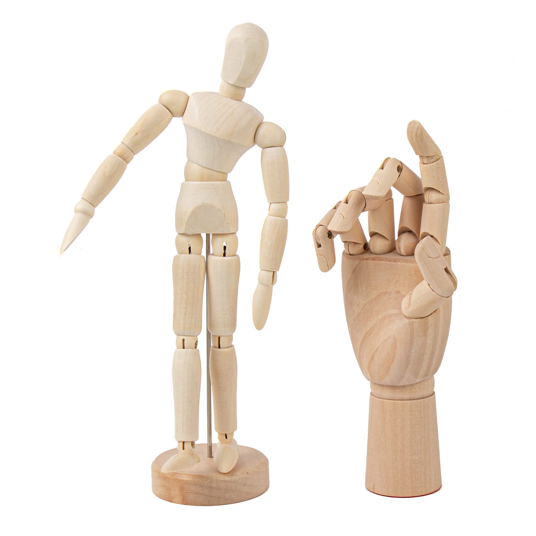 • Wooden Drawing Mannequin Kit, 12″ Right Hand + 8″ Mannequin, 2-Pack